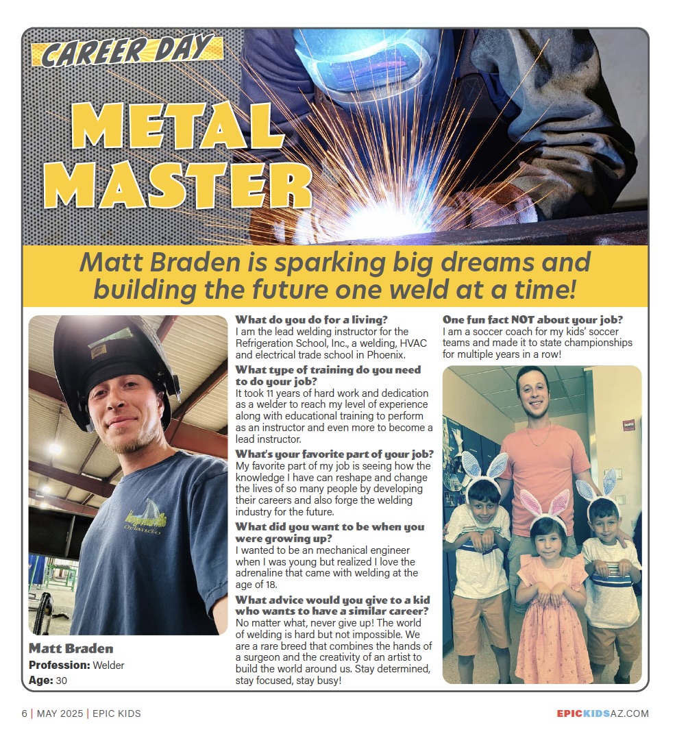 I am the lead welding instructor for the Refrigeration School, Inc., a welding, HVAC and electrical trade school in Phoenix.