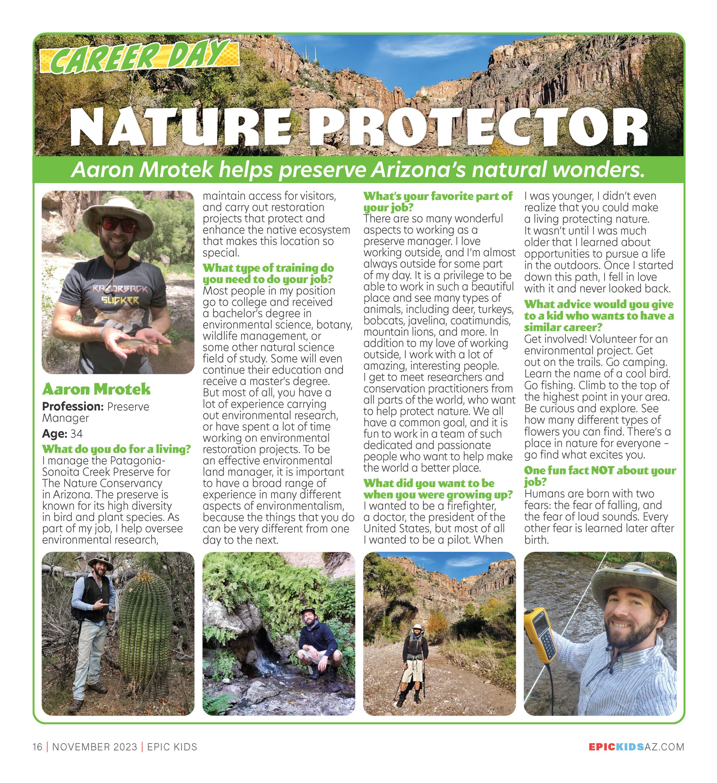I manage the Patagonia-Sonoita Creek Preserve for The Nature Conservancy in Arizona. The preserve is known for its high diversity in bird and plant species. As part of my job, I help oversee environmental research, maintain access for visitors, and carry out restoration projects that protect and enhance the native ecosystem that makes this location so special.