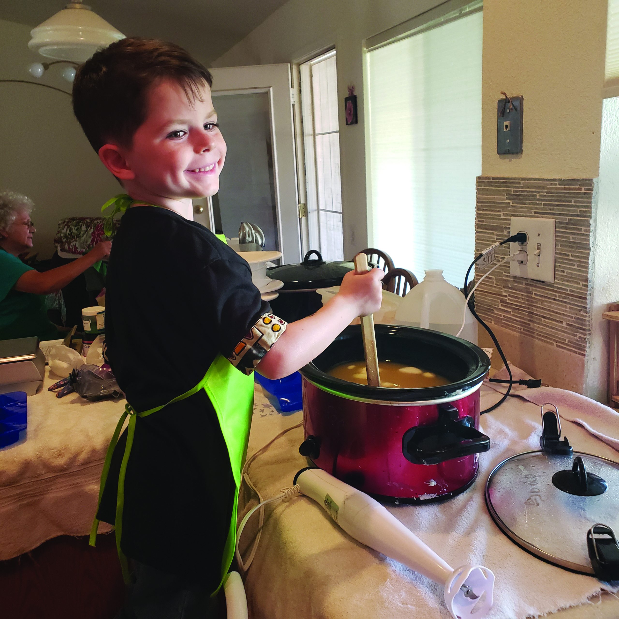 “He saw what I was doing and asked if he could help and from there he just took over,” says TamaraLynn. Five-year-old Jax has since gone on to take adult classes to learn hot and cold processes to make soap and he’s now adept at using lye, water, and oils to make soap.