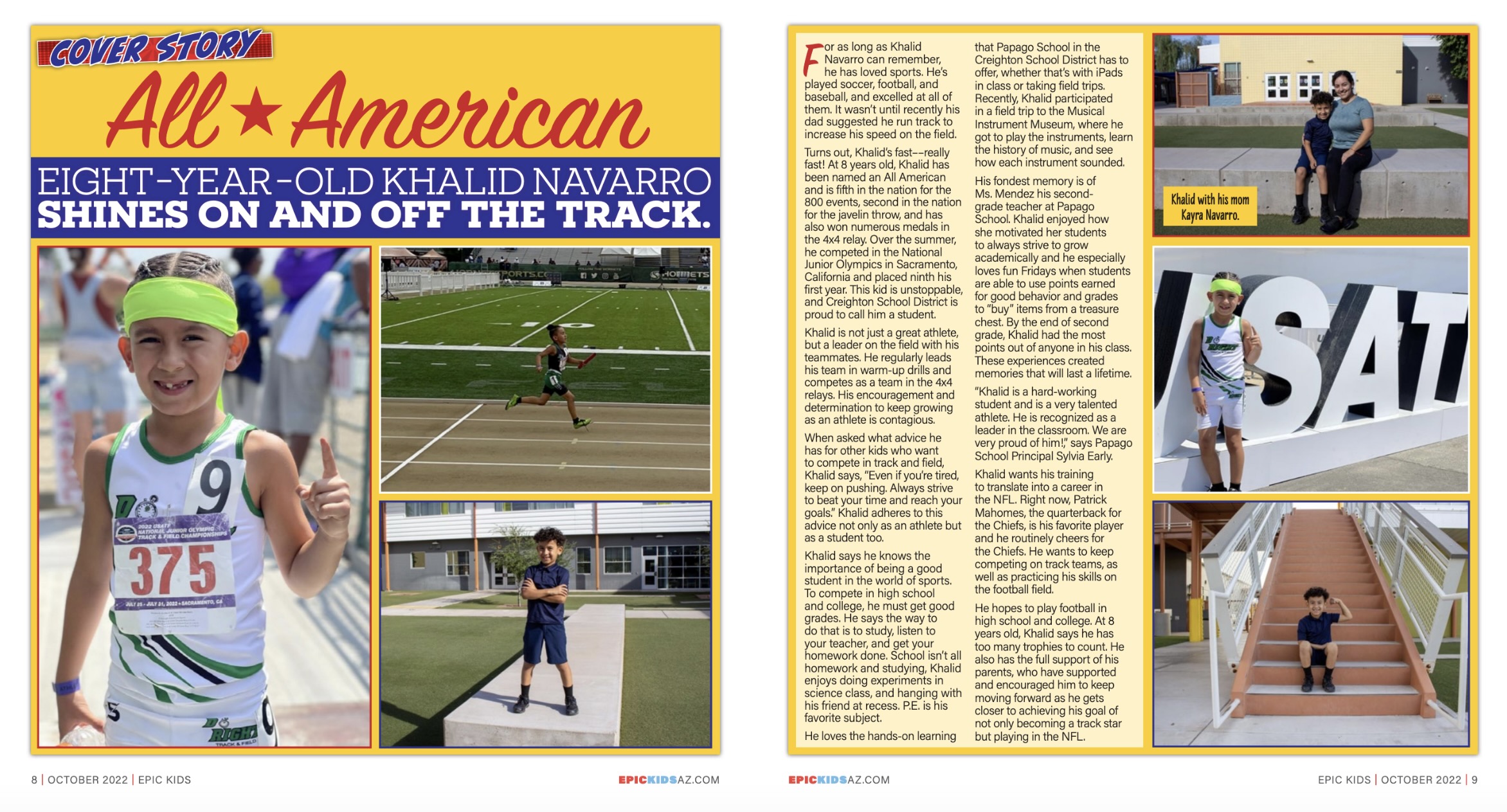 Khalid wants his training to translate into a career in the NFL. Right now, Patrick Mahomes, the quarterback for the Chiefs is his favorite player and he routinely cheers for the Chiefs. He wants to keep competing on track teams, as well as practicing his skills on the football field.