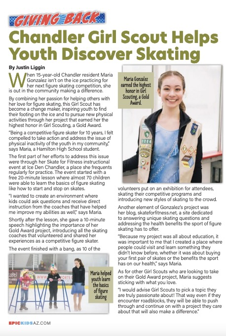 When 15-year-old Chandler resident Maria Gonzalez isn’t on the ice practicing for her next figure skating competition, she is out in the community making a difference.