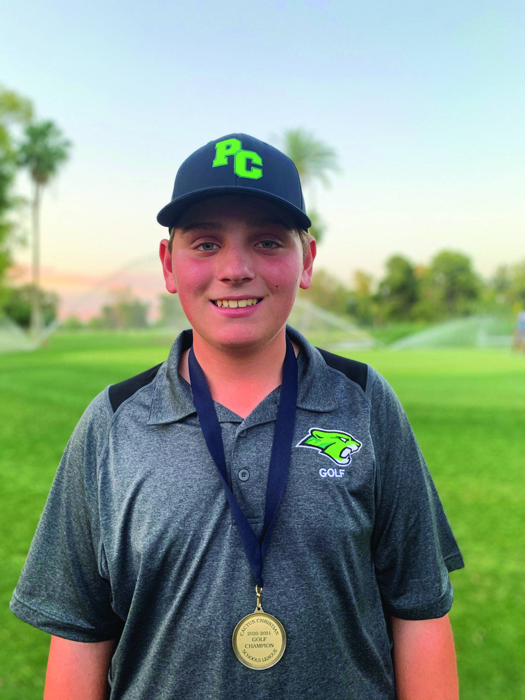 Freshman JJ Brigowatz, 15, was named the number one golfer in his division for 2020/2021. JJ competed in the Cactus Christian League along with his teammates at Phoenix Christian Preparatory School. His team took home third place after a challenging season, and JJ finished first place overall.