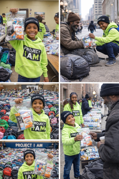 He started a group called Project I Am, which helped many more people. Other kids and adults joined in to help make and share Blessing Bags too.