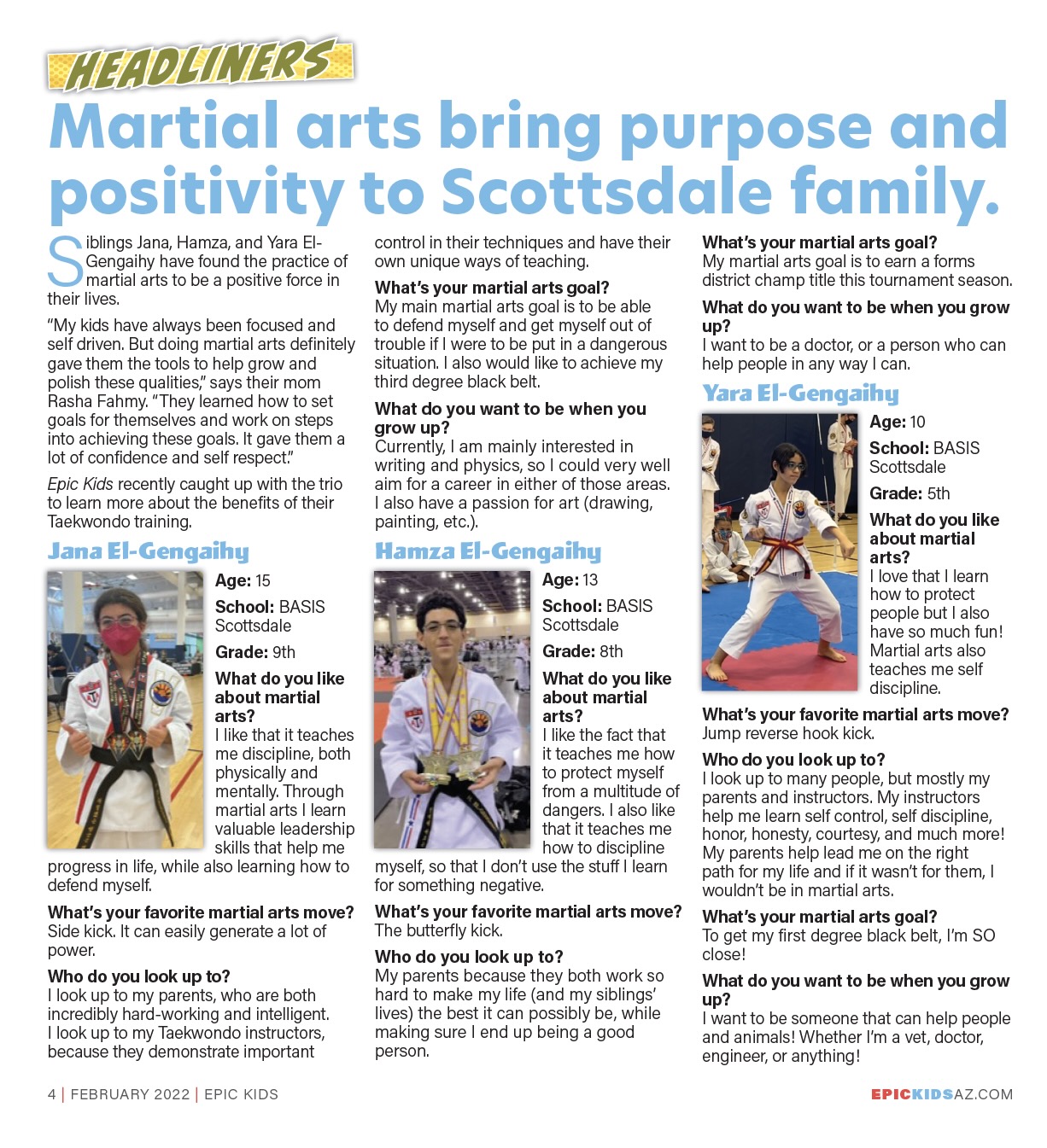 “My kids have always been focused and self driven. But doing martial arts definitely gave them the tools to help grow and polish these qualities,” says their mom Rasha Fahmy. “They learned how to set goals for themselves and work on steps into achieving these goals. It gave them a lot of confidence and self respect.”