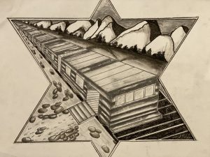 I hope you enjoy my art. I learned a lot about the Holocaust while drawing these images and discussing them with my family. Thank you for giving me the opportunity to share my art with you and to recognize the Holocaust in my own way.”