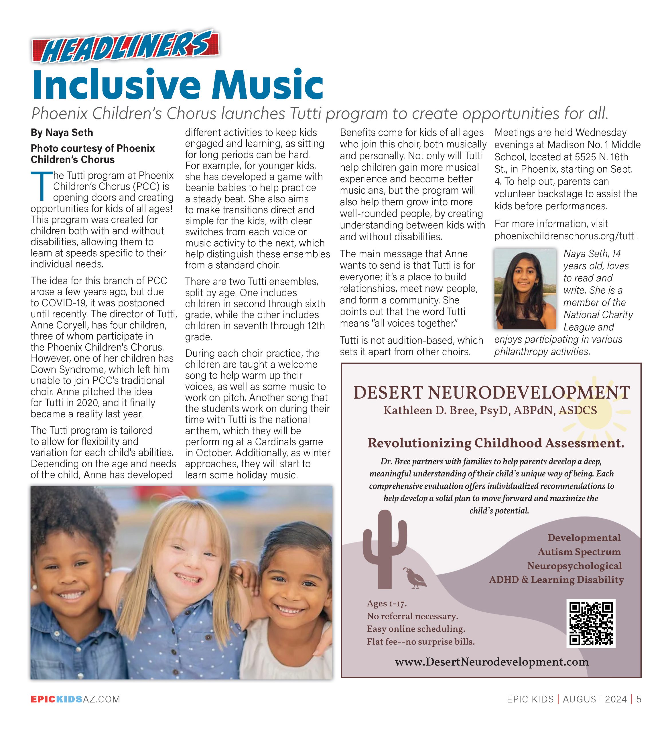 The Tutti program at Phoenix Children’s Chorus (PCC) is opening doors and creating opportunities for kids of all ages! This program was created for children both with and without disabilities, allowing them to learn at speeds specific to their individual needs.