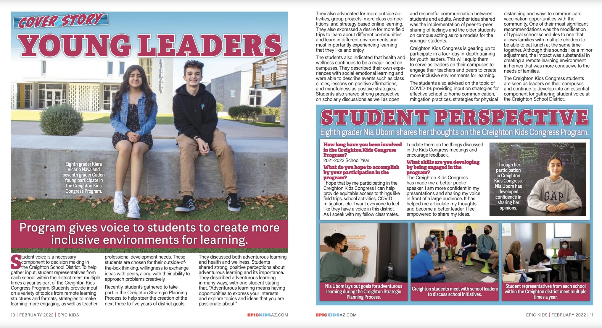 The Creighton Kids Congress students are seen as leaders on their campuses and continue to develop into an essential component for gathering student voice at the Creighton School District.