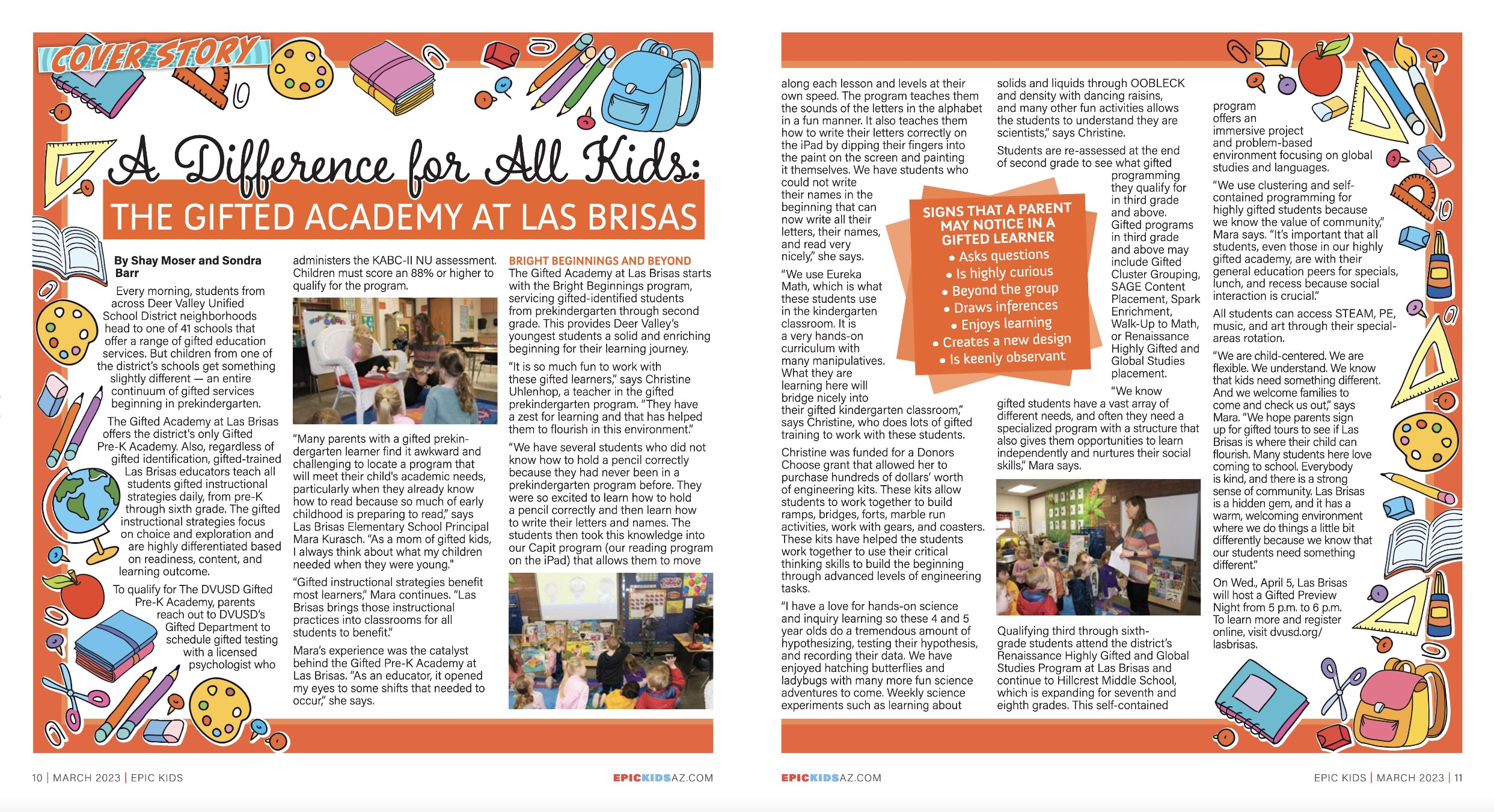 The Gifted Academy at Las Brisas starts with the Bright Beginnings program, servicing gifted-identified students from prekindergarten through second grade. This provides Deer Valley’s youngest students a solid and enriching beginning for their learning journey.