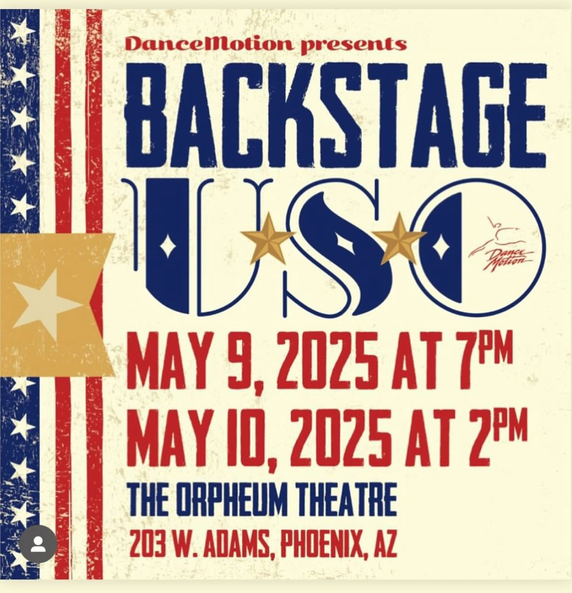 Bender Performing Arts’ DanceMotion Performing Company will present its spring production, Backstage USO, at the historic Orpheum Theater in downtown Phoenix. This high-energy, family-friendly show features 125 talented youth dancers and will run for two public performances: Friday, May 9 at 7 p.m. and Saturday, May 10 at 2 p.m.