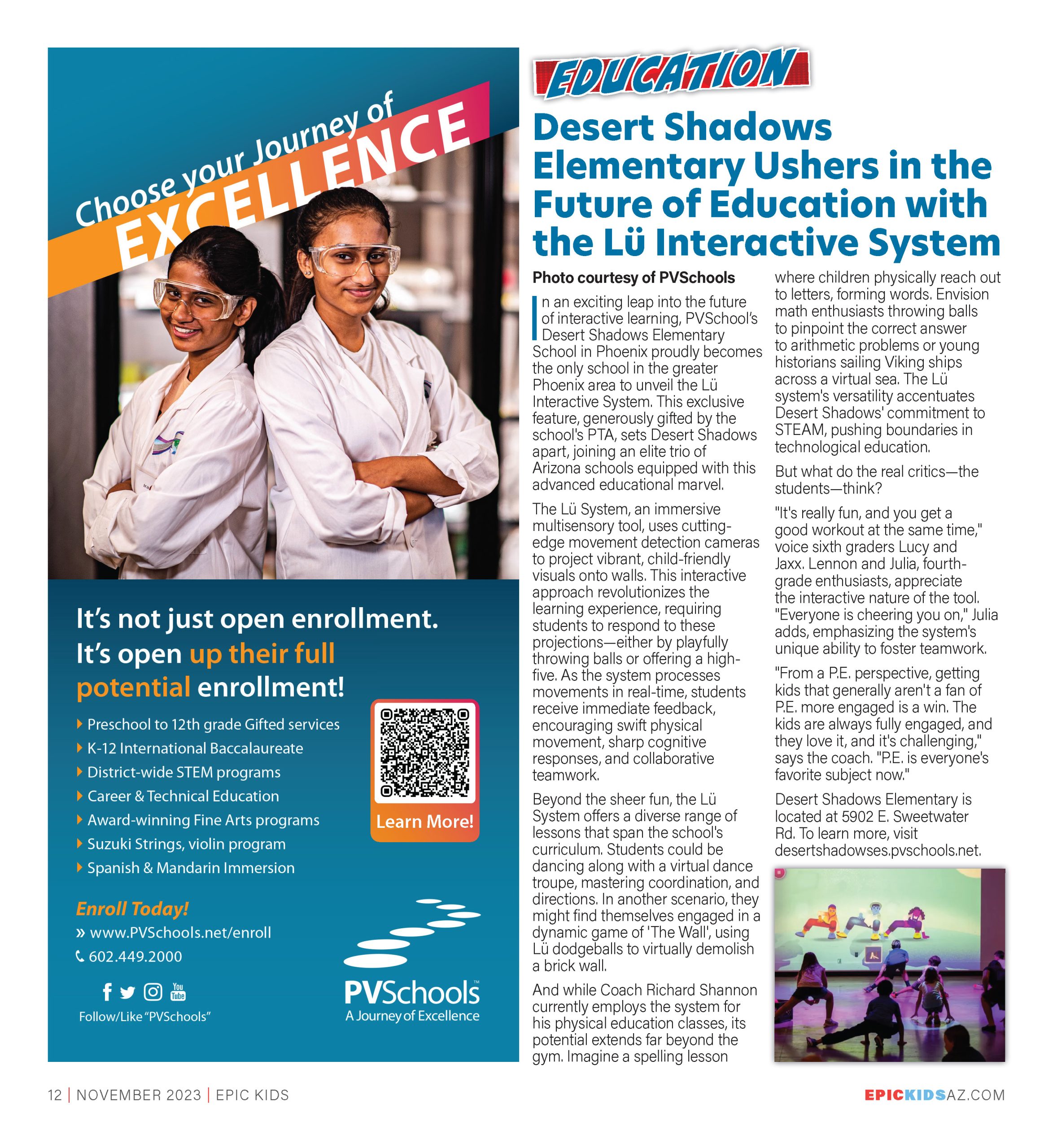 In an exciting leap into the future of interactive learning, PVSchool’s Desert Shadows Elementary School in Phoenix proudly becomes the only school in the greater Phoenix area to unveil the Lü Interactive System. This exclusive feature, generously gifted by the school’s PTA, sets Desert Shadows apart, joining an elite trio of Arizona schools equipped with this advanced educational marvel.