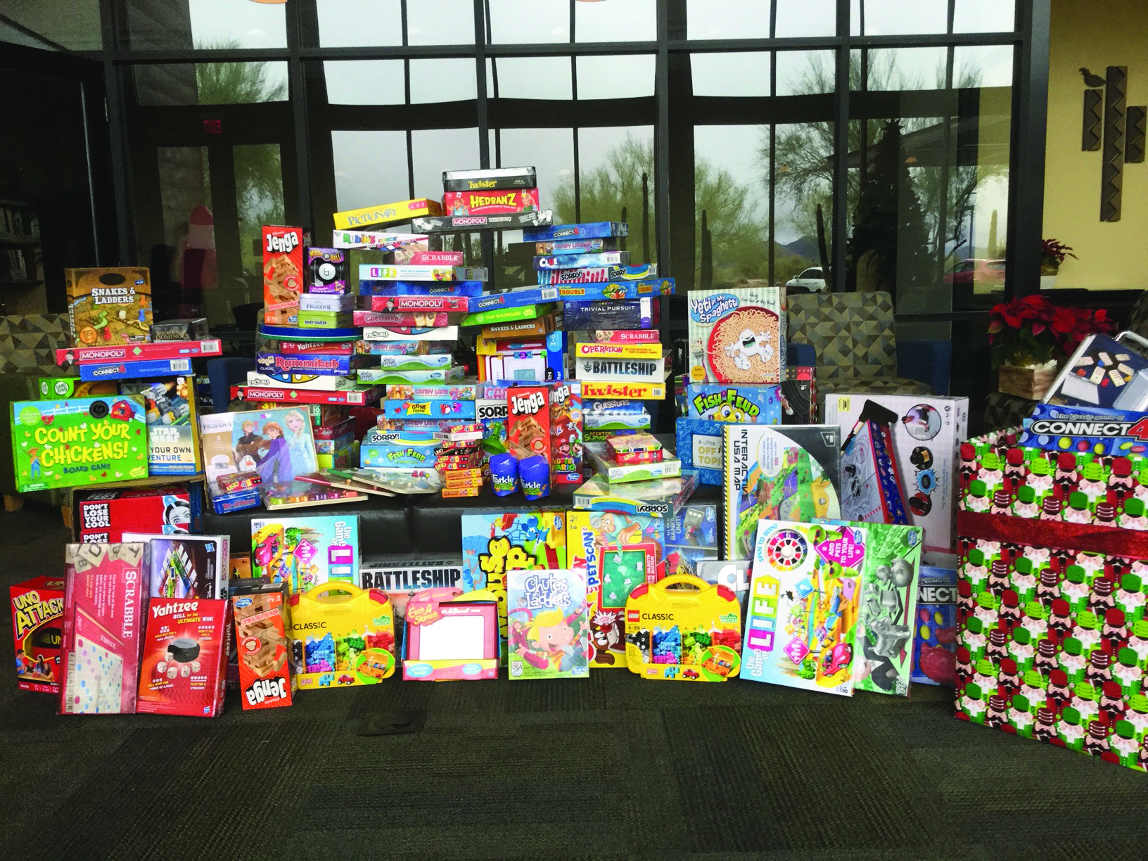 “The food bank is accepting family games, such as Monopoly, dominoes, Candyland, Uno, Connect 4, checkers and Yahtzee, and/or $50 Walmart or Visa gift cards to afford families the flexibility to pay a bill and purchase toys for their children,” says Leigh Zydonik, executive director of Foothills Food Bank.