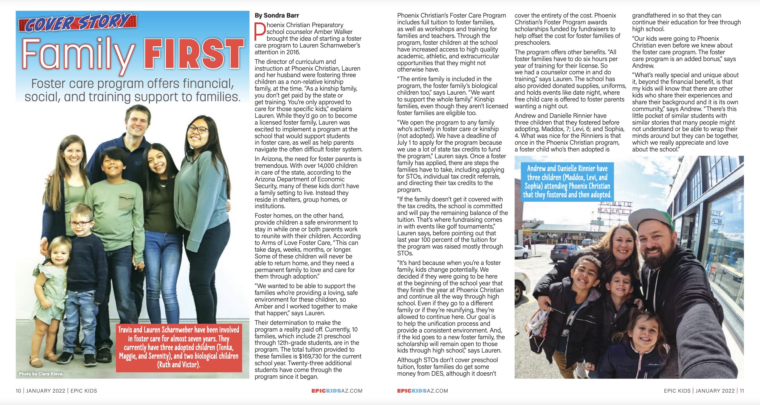 “It’s hard because when you’re a foster family, kids change potentially. We decided if they were going to be here at the beginning of the school year that they finish the year at Phoenix Christian and continue all the way through high school. Even if they go to a different family or if they’re reunifying, they’ll allowed to continue here. Our goal is to help the unification process and provide a consistent environment. And, if the kid goes to a new foster family, the scholarship will remain open to those kids through high school,” says Lauren.