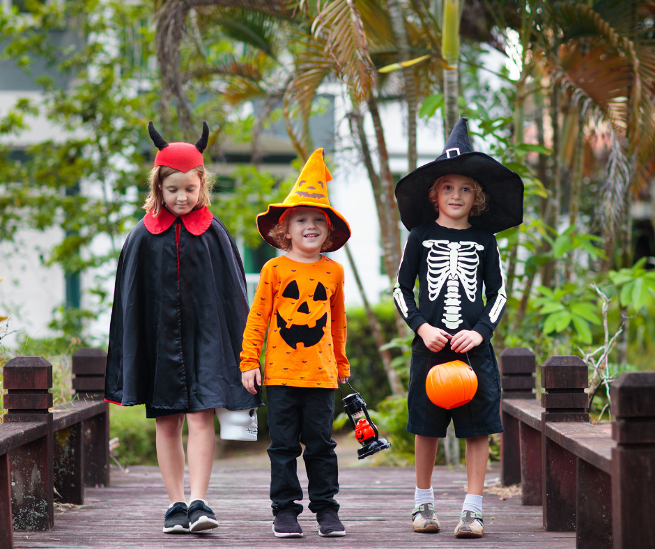 Make sure Halloween costumes are flame-retardant and light in color to improve visibility.