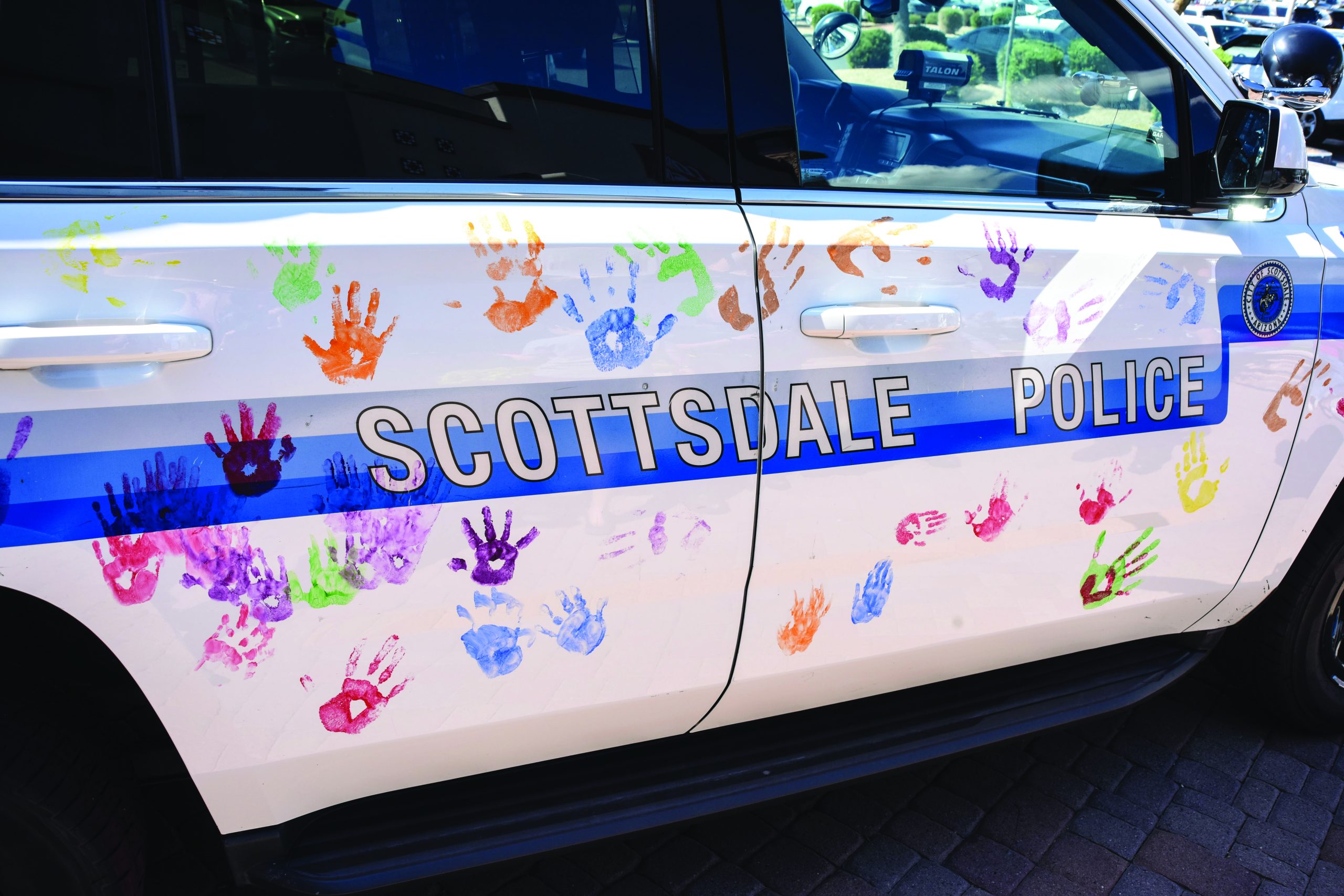 The program was started by former Scottsdale Police Department Officer David Kamleiter and current Police Aid Sherri Hawkinson. “One of our officers had heard of something like this being done at another agency [placing handprints on a police car] and suggested it to our team as a potentially fun idea to do in conjunction with some of the events we do out in the community,” Hawkinson says.