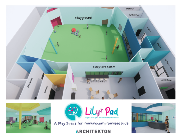 Lily’s Pad will provide a safe place to play for children who are undergoing treatments or born with conditions that impact their immunity. Examples include children battling cancer, living with congenital heart defects, or born with congenital heart defects, or born with primary immune deficiencies. The facility will also have a space dedicated to caregivers to allow them to socialize with other families, get much needed rest, or find resources that they may not be aware of.