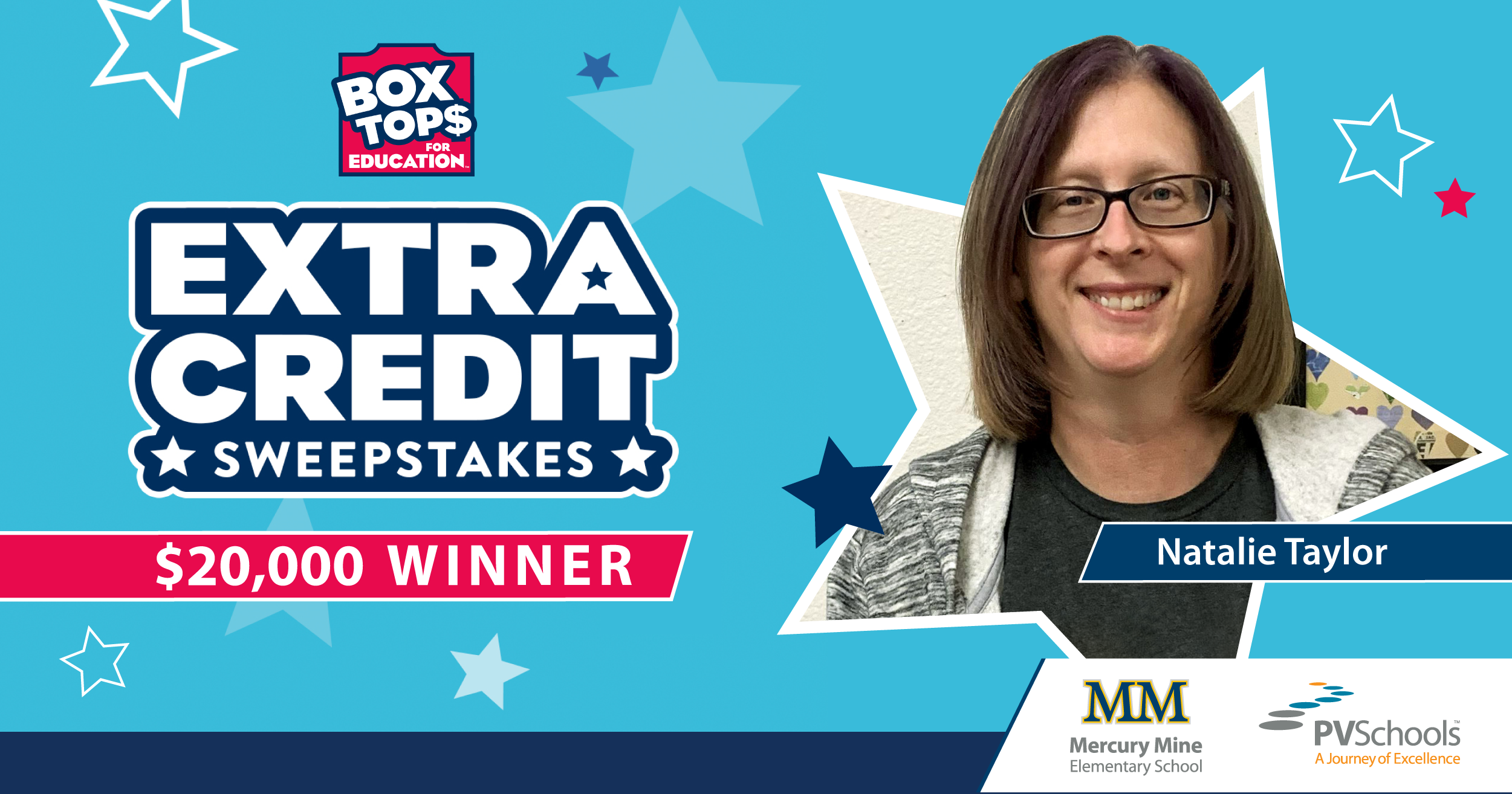 Natalie Taylor, a Montessori preschool teacher and parent at Mercury Mine Elementary School, won $20,000 for the school in the Box Tops Extra Credit Sweepstakes.