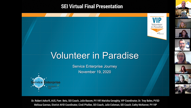In early 2020, VIP enrolled in the Service Enterprise Initiative (SEI) through the ASU Lodestar Center for Philanthropy and Nonprofit Innovation, which works with Points of Light and the Arizona Governor’s Office of Youth, Faith & Family to offer this exclusive volunteer-management program to Arizona nonprofit and public organizations. VIP is the first school district to go through the Service Enterprise Initiative program with ASU.