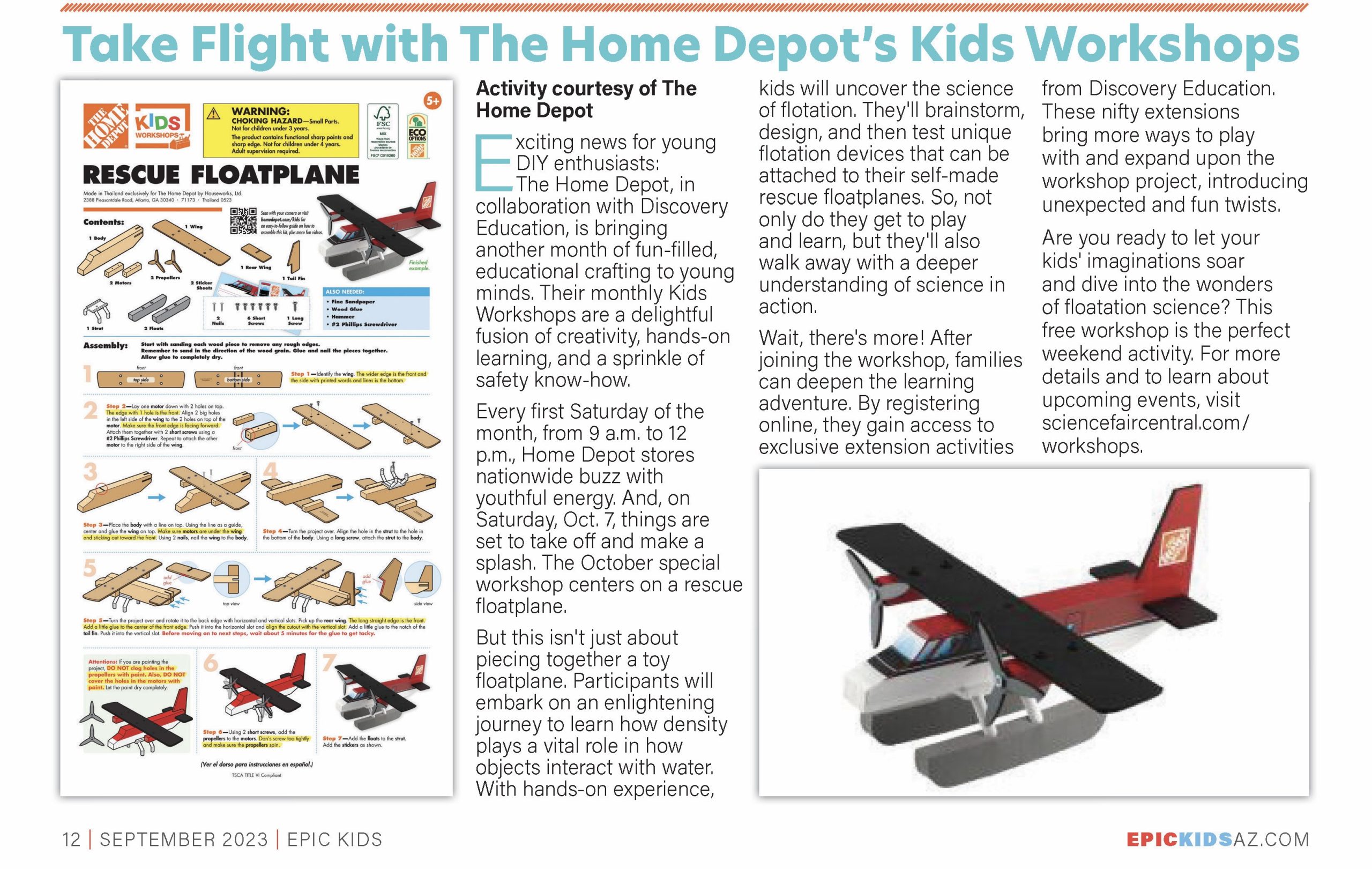 Every first Saturday of the month, from 9 a.m. to 12 p.m., Home Depot stores nationwide become buzzing hubs of youthful energy. And on Saturday, October 7, things are set to take off and make a splash. The October special workshop centers on a rescue floatplane.