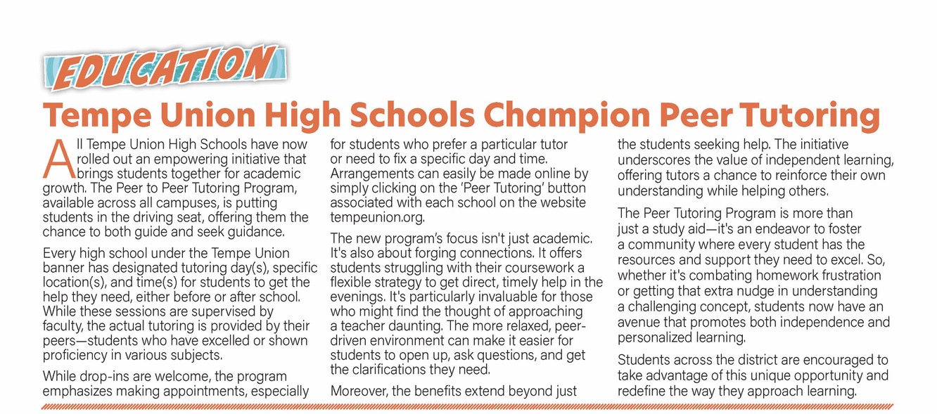 All Tempe Union High Schools have rolled out an empowering initiative that brings students together for academic growth. The Peer to Peer Tutoring Program, available across all campuses, is putting students in the driving seat, offering them the chance to both guide and seek guidance.