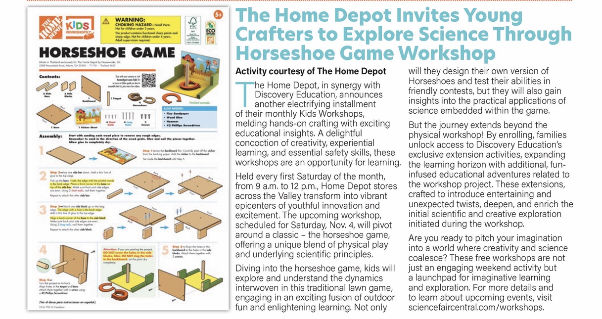Held every first Saturday of the month, from 9 a.m. to 12 p.m., Home Depot stores across the Valley transform into vibrant epicenters of youthful innovation and excitement. The upcoming workshop, scheduled for Saturday, Nov. 4, will pivot around a classic – the horseshoe game, offering a unique blend of physical play and underlying scientific principles.