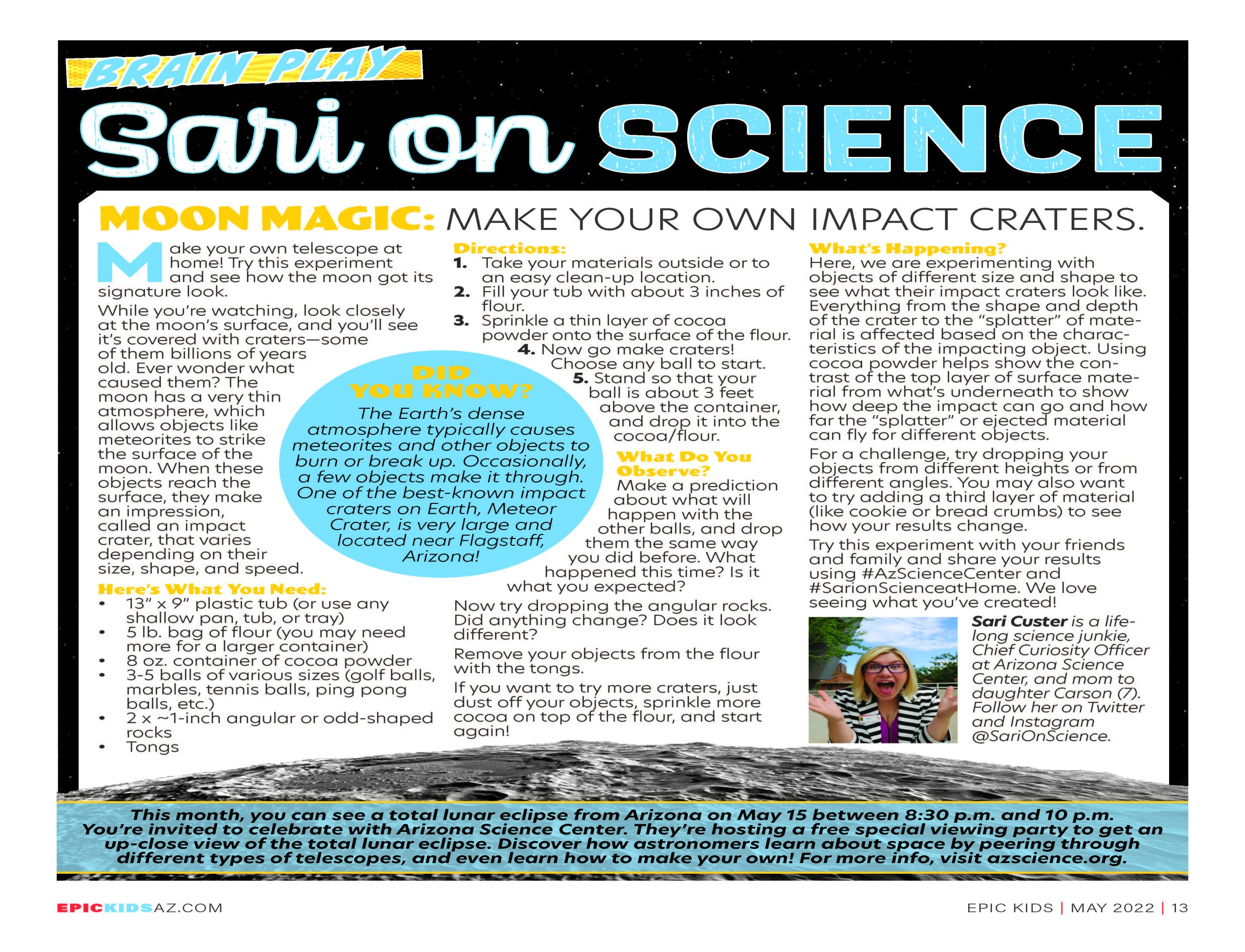 Moon Magic Make your own impact craters. Make your own telescope at home! Try this experiment and see how the moon got its signature look. While you’re watching, look closely at the moon’s surface, and you’ll see it’s covered with ...