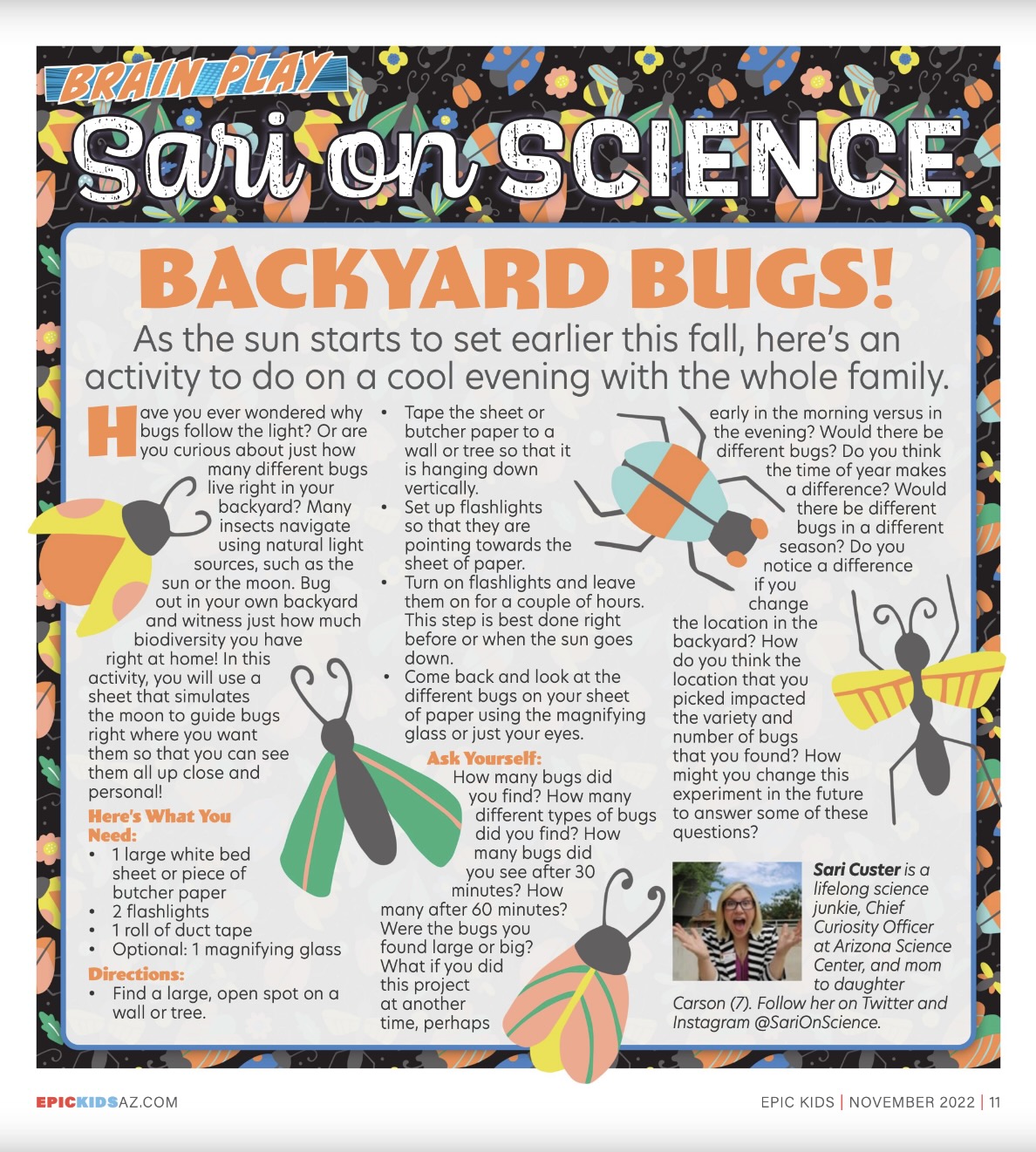 Have you ever wondered why bugs follow the light? Or are you curious about just how many different bugs live right in your backyard? Many insects navigate using natural light sources, such as the sun or the moon. Bug out in your own backyard and witness just how much biodiversity you have right at home! In this activity, you will use a sheet that simulates the moon to guide bugs right where you want them so that you can see them all up close and personal!