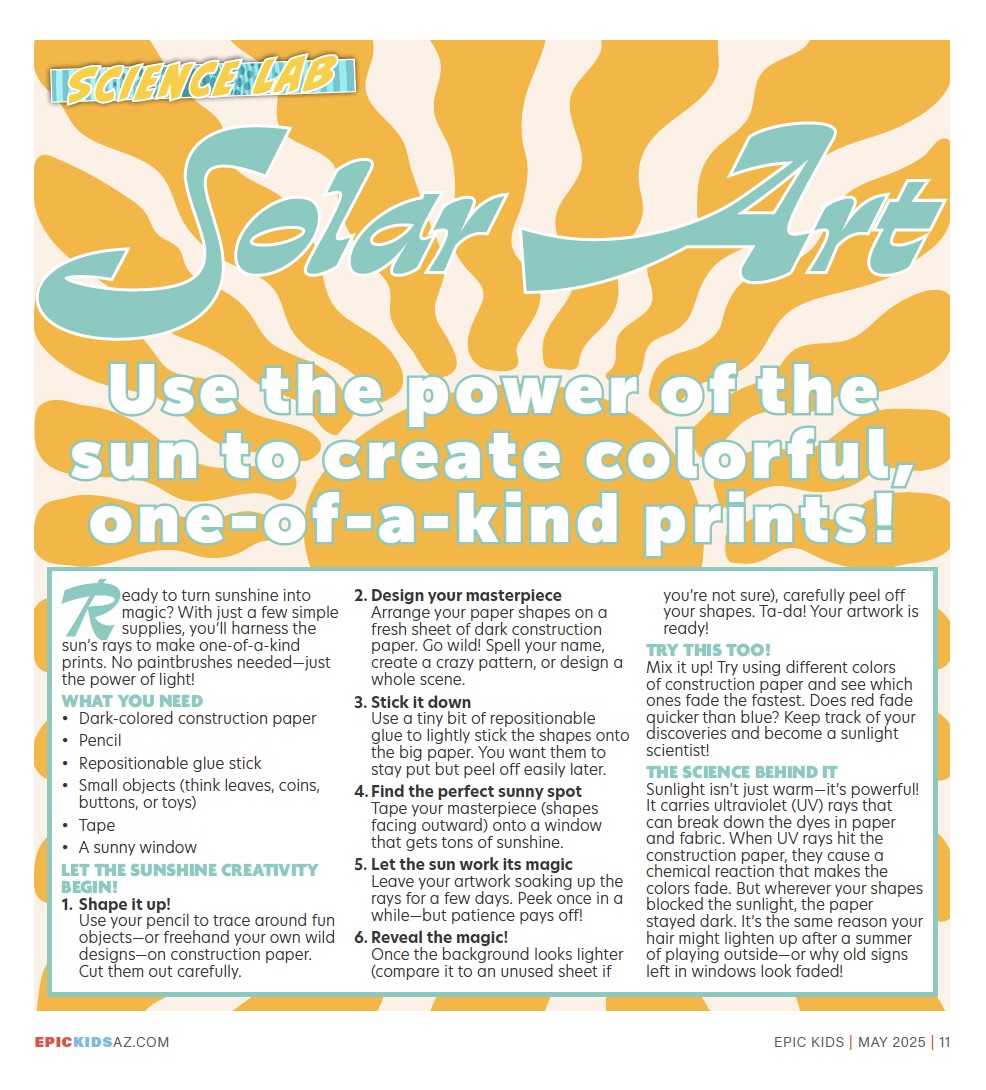 Ready to turn sunshine into magic? With just a few simple supplies, you’ll harness the sun’s rays to make one-of-a-kind prints. No paintbrushes needed—just the power of light!