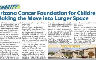 Ava’s Tree House was created to offer children the gift of childhood in a safe, hyper-clean, comforting environment. Arizona Cancer Foundation for Children’s new 12,000 square foot building will be remodeled into just that, a stress-reducing environment for families impacted ...