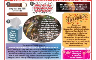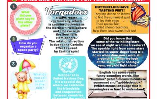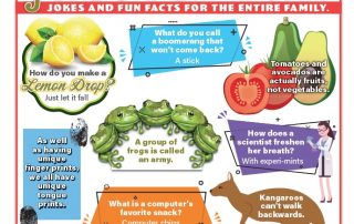 As well as having unique finger prints, we all have unique tongue prints. What do you call a boomerang that won’t come back? A stick. Kangaroos can’t walk backwards. How does a scientist freshen her breath? With experi-mints. Tomatoes and ...