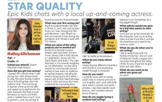 Star Quality Epic Kids chats with a local up-and-coming actress. Name: Hailey Glicksman Age: 14 Grade: 9th School you attend: Desert Mountain High School How did you get into acting? I started off in dance when I was young, but ...