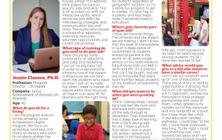 Name: Jennie Clausen, Ph.D. Profession: Program Director – JA Inspire Company: Junior Achievement of Arizona (JA Arizona) Age: 42   What do you do for a living?  I am the program director for the amazing Junior Achievement (JA) Inspire Program. ...