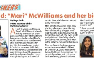By Naya Seth Photos courtesy of the McWilliams family At just 13 years old, Mariana “Mari” McWilliams is already making waves as an entrepreneur. Inspired by others starting businesses, she launched Mari’s Gold—a snow cone stand named after the marigold ...