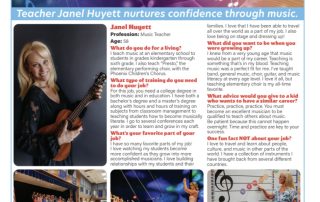 Name: Janel Huyett Profession: Music Teacher Age: 58 What do you do for a living? I teach music at an elementary school to students in grades kindergarten through sixth grade. I also teach “Presto,” the elementary performing choir, with the ...