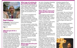 CURIOSITY CREATOR Sari Custer inspires the spirit of discovery and wonder. Sari Custer Profession: Chief of Science and Curiosity at Arizona Science Center Age: 40 What do you do for a living? I work for the Arizona Science Center as ...