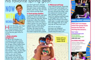 Fun in the Sun Nicholas is ready for spring with his favorite spring gear. Hi! I’m Nicholas, your Epic Kids columnist. I’m a second grade CEO, and this month I’m sharing four of my favorite gear finds for spring, especially ...