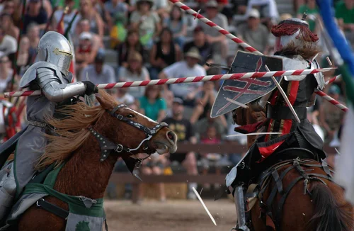 thousands of seats!). Two knights in shiny armor rode giant horses and charged at each other with lances (long wooden poles). When they crashed into each other’s shields, the whole crowd gasped.