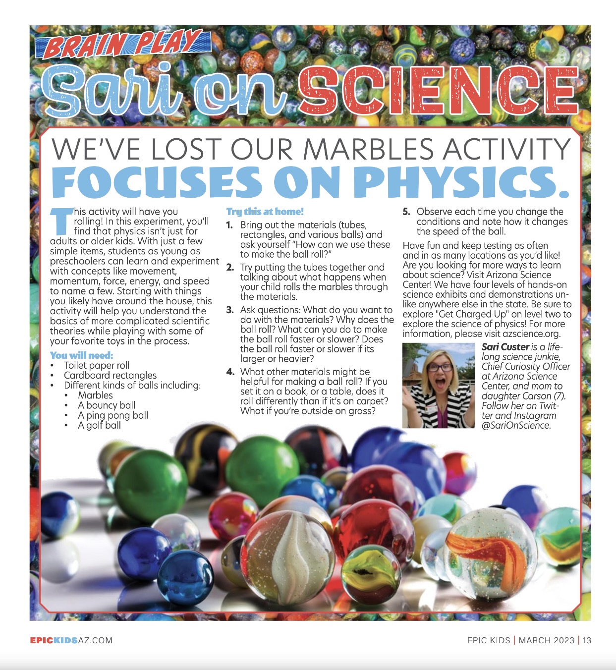 Have fun and keep testing as often and in as many locations as you’d like! Are you looking for more ways to learn about science? Visit Arizona Science Center! We have four levels of hands-on science exhibits and demonstrations unlike anywhere else in the state. Be sure to explore Get Charged Up on level two to explore the science of physics! For more information, please visit azscience.org.