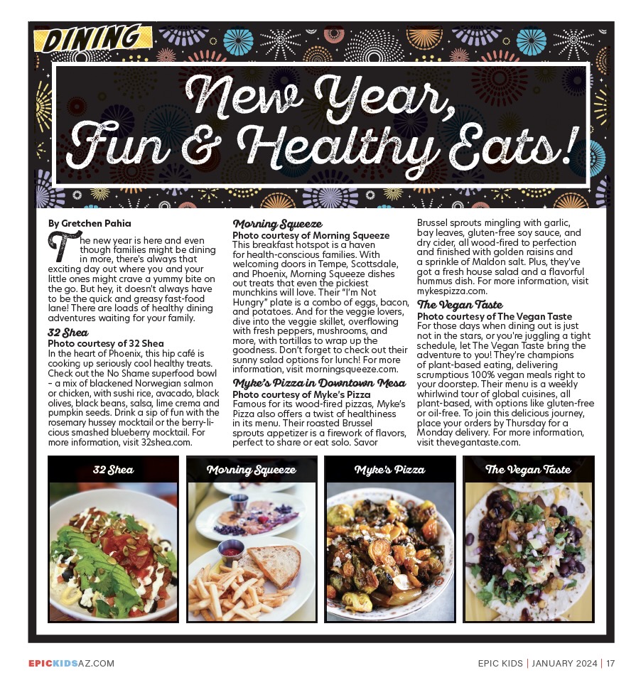 New Year, Fun & Healthy Eats! By Gretchen Pahia The new year is here and even though families might be dining in more, there's always that exciting day out where you and your little ones might crave a yummy bite ...